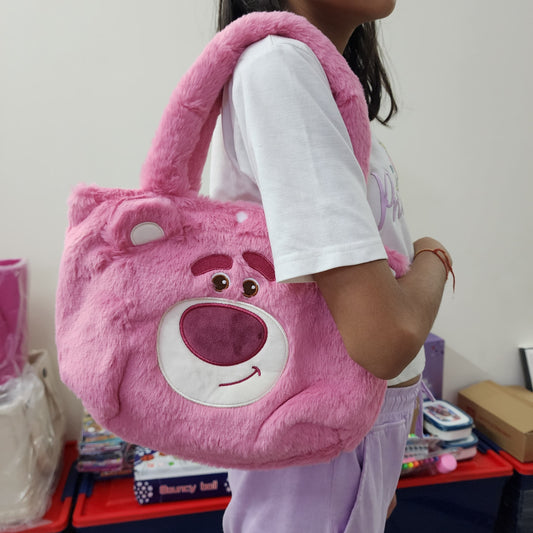 CUTE FUR FABRIC TOTE/HAND BAG WITH EMBROIDERY