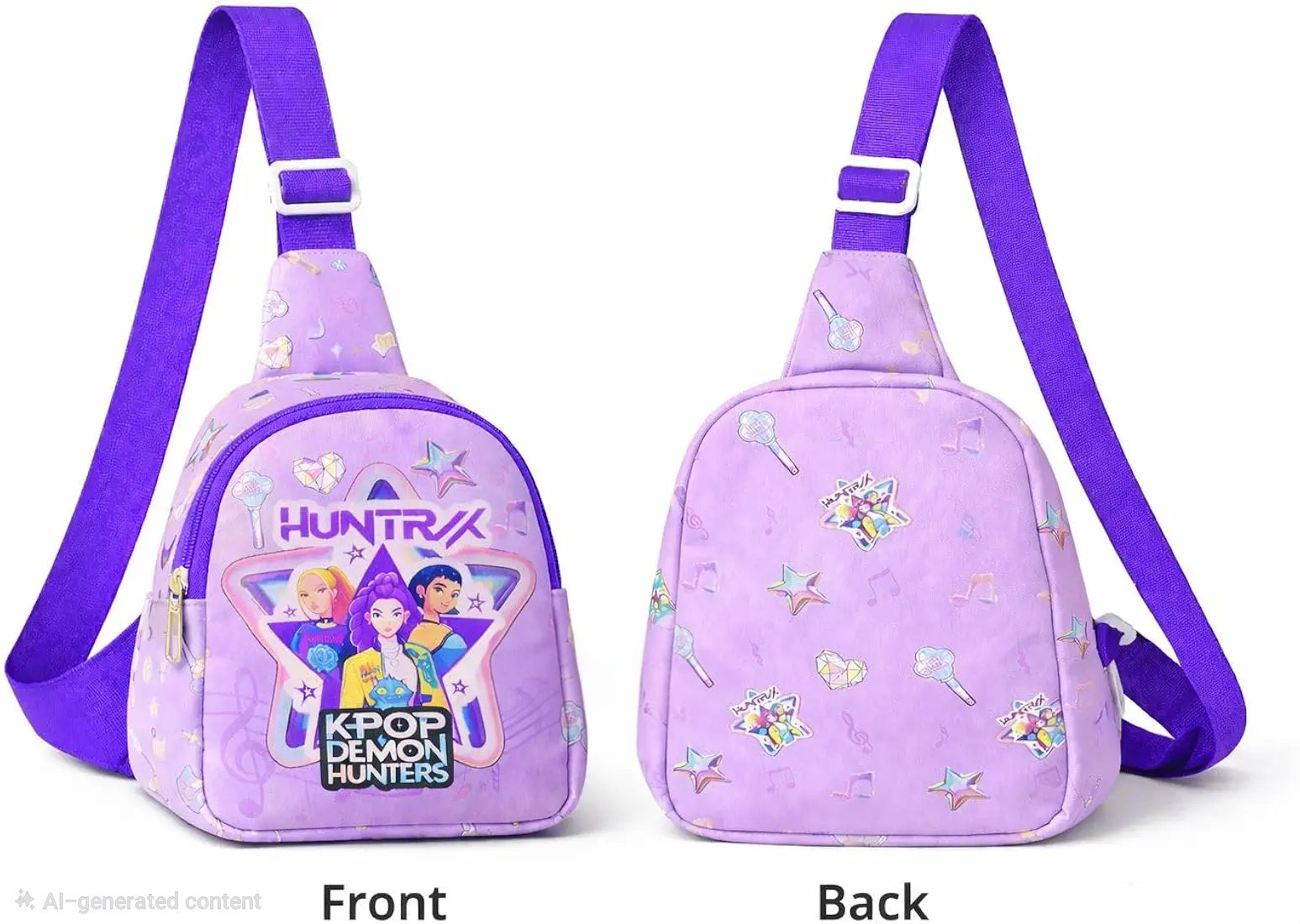 Kids Chest Sling Bag for Girls, Cute Cartoon Print K POP Demon Hunters Huntrix Theme Mini Crossbody Bag, Lightweight Travel & Outing Bag [ 20 x 13 cm ]