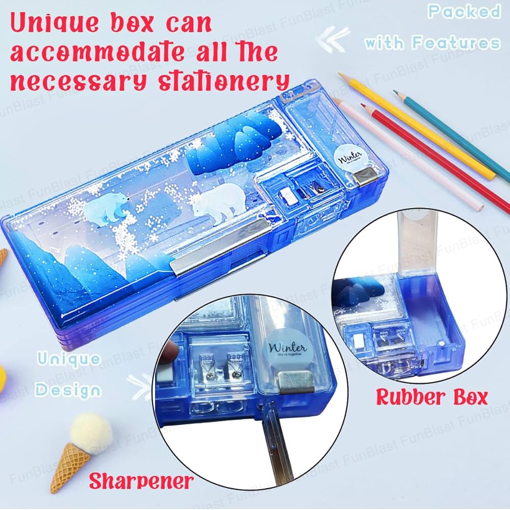 Magnetic Pencil Case with Sharpener - Pencil Box for Kids, Bear Theme Pencil Box for Kids, Pencil Box for Girls, Pencil Box for Girls Stylish, Stationary Items